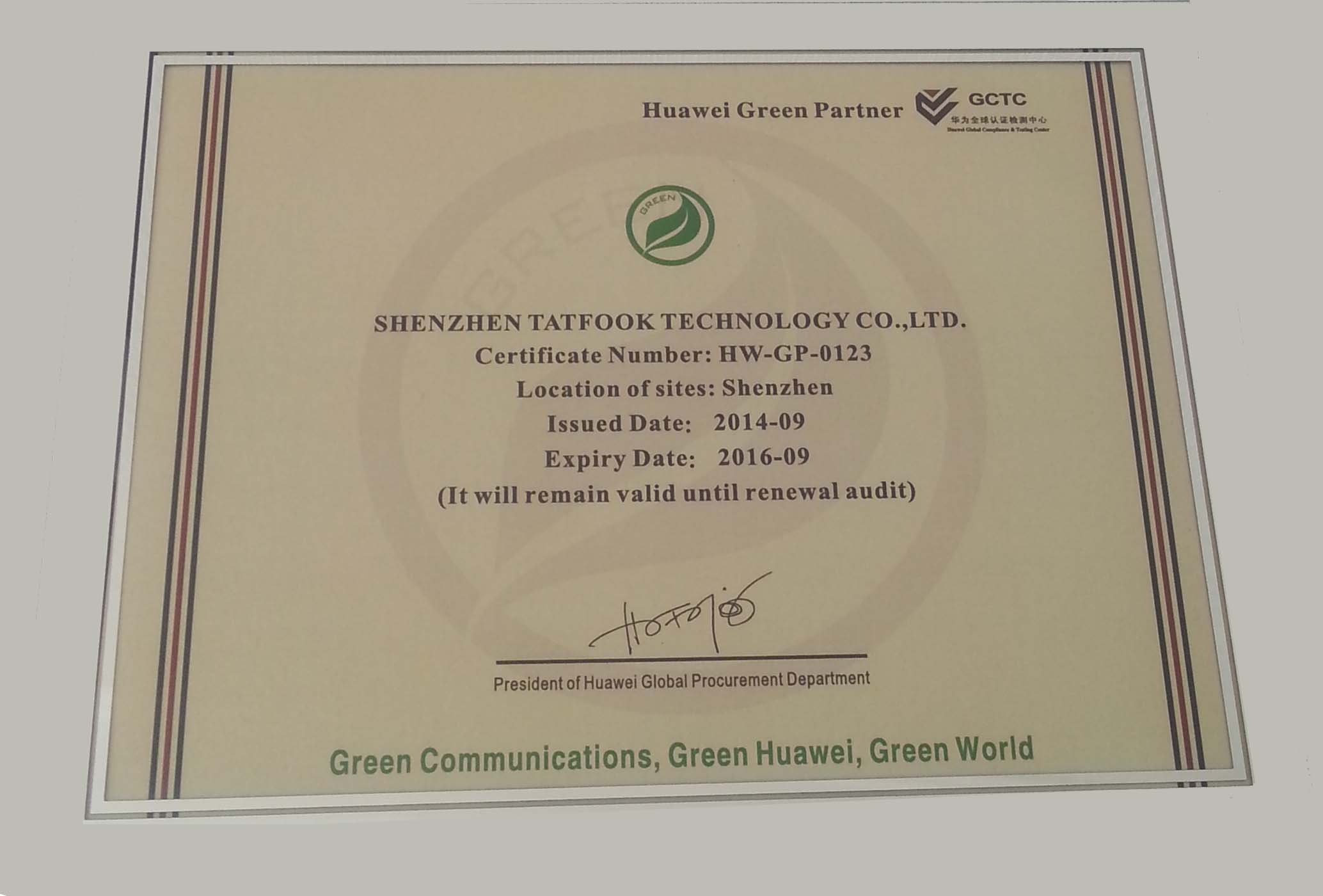 2014年9月,公司荣获华为技术有限公司绿色合作伙伴认证,该认证意味着,ky(中国)在产品内容和生产过程的绿色环保性业已经达到或超过了华为的严格环保要求,并得到了后者的充分肯定。华为”绿色合作伙伴”项目旨在鼓励供应商尽可能降低所部件生产所造成的环境影响。
